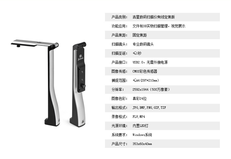 吉星便攜辦公助手500萬像素高清掃描 A4幅面